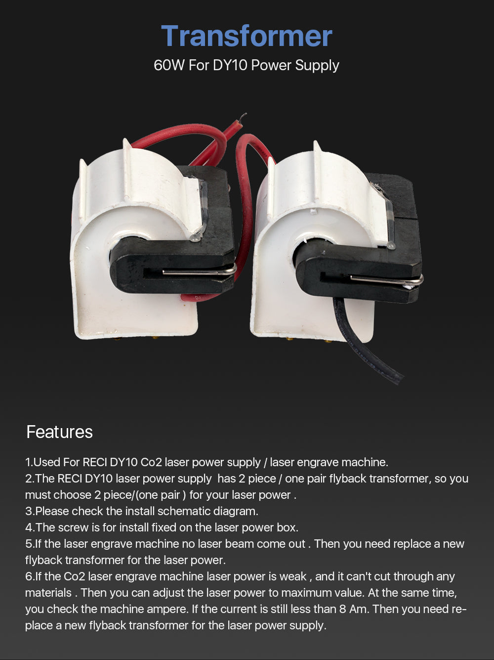 Cloudray 60W High Voltage Flyback Transformer For DY10 Power Supply